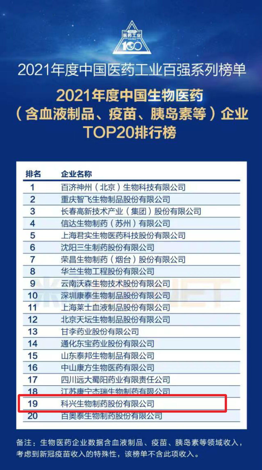 實(shí)力肯定!科興制藥榮登2021年度中國生物醫(yī)藥企業(yè)TOP20榜單
