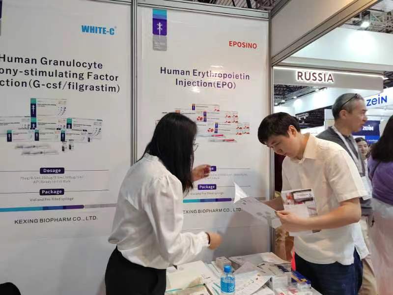 在本次展會上,科興制藥攜人促紅素EPOSINO、人粒細(xì)胞刺激因子WHITE-C、貝伐珠單抗ARKETIN、英夫利西單抗Reminton、白蛋白紫杉醇、阿達(dá)木單抗Ahrasin、利拉魯肽等多款出海產(chǎn)品亮相,吸引了眾多海外客戶前來展臺咨詢,共接待50余家醫(yī)藥企業(yè),收獲頗豐。同時,通過展會橋梁,與客戶面對面交流市場前沿信息,極大增強(qiáng)了客戶與科興制藥的合作信心,進(jìn)一步鞏固科興制藥在國際醫(yī)藥供應(yīng)鏈體系中的優(yōu)勢地位。