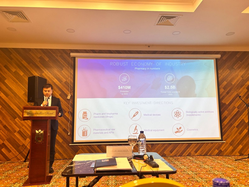 2024年4月15日,第一屆中烏生物制藥商務與合作論壇在塔什干GRAND MIR HOTEL盛大舉行。烏茲別克斯坦衛(wèi)生部、烏茲別克斯坦國家制藥工業(yè)發(fā)展局、烏茲別克斯坦TOP20藥企及英德生物、中國生物制藥、Sinopharmtech等企業(yè)代表參加了此次盛會。科興制藥作為特邀嘉賓,發(fā)表了“一帶一路--生物藥之中烏合作機會探討”的主題演講。
