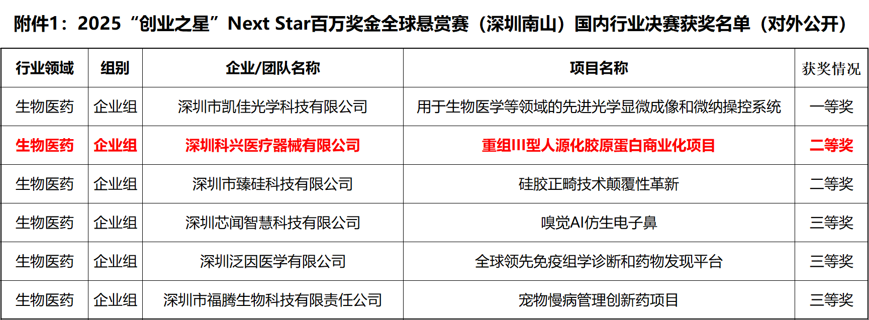 近日,科興制藥全資子公司-深圳科興醫(yī)療器械有限公司(簡稱“科興醫(yī)療器械”)的重組Ⅲ型人源化膠原蛋白商業(yè)化項目(GB14項目),在第十七屆中國深圳創(chuàng)新創(chuàng)業(yè)大賽南山創(chuàng)賽——2025“創(chuàng)業(yè)之星”NextStar百萬獎金全球懸賞賽(深圳南山)中脫穎而出,榮獲生物醫(yī)藥行業(yè)決賽企業(yè)組二等獎,公司研發(fā)實力得到認(rèn)可。